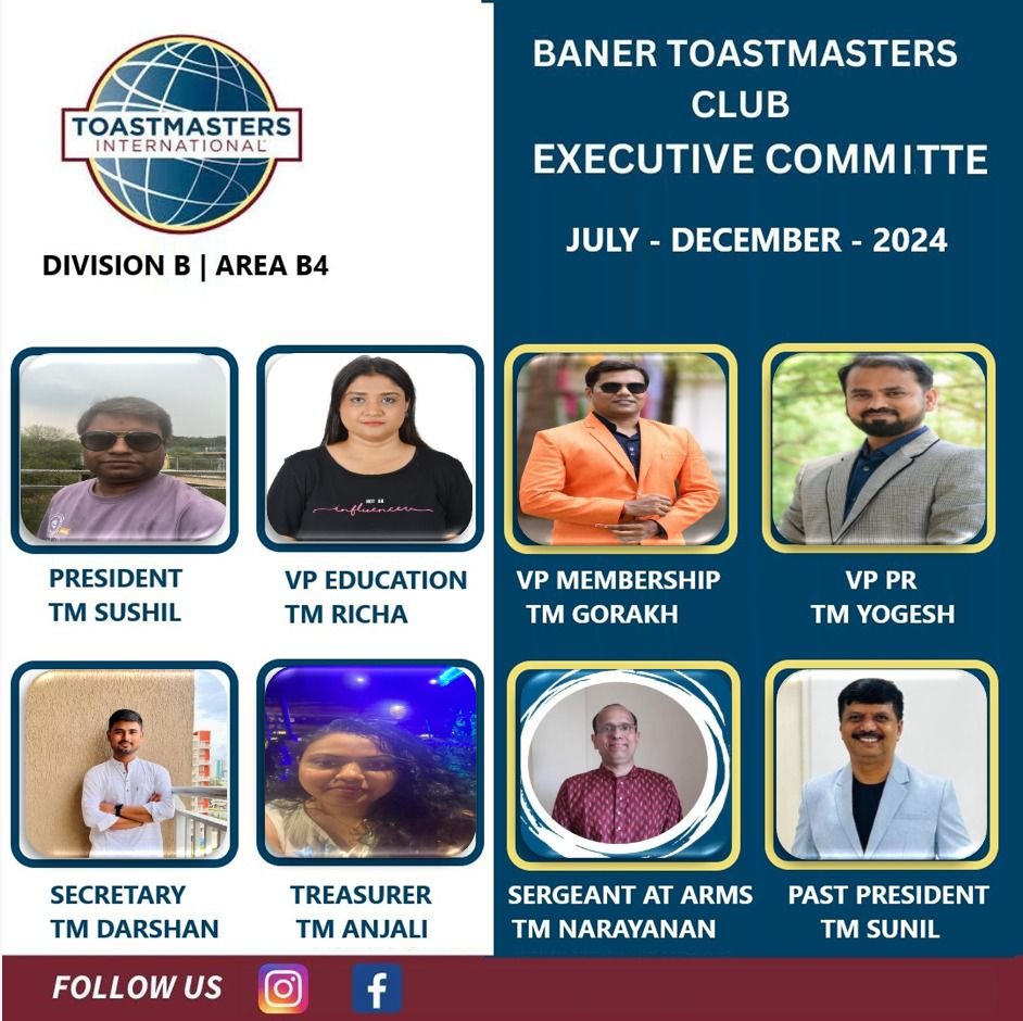 Elected as Vice President Public Relations (VP-PR) for Baner Toastmasters Club, Pune
