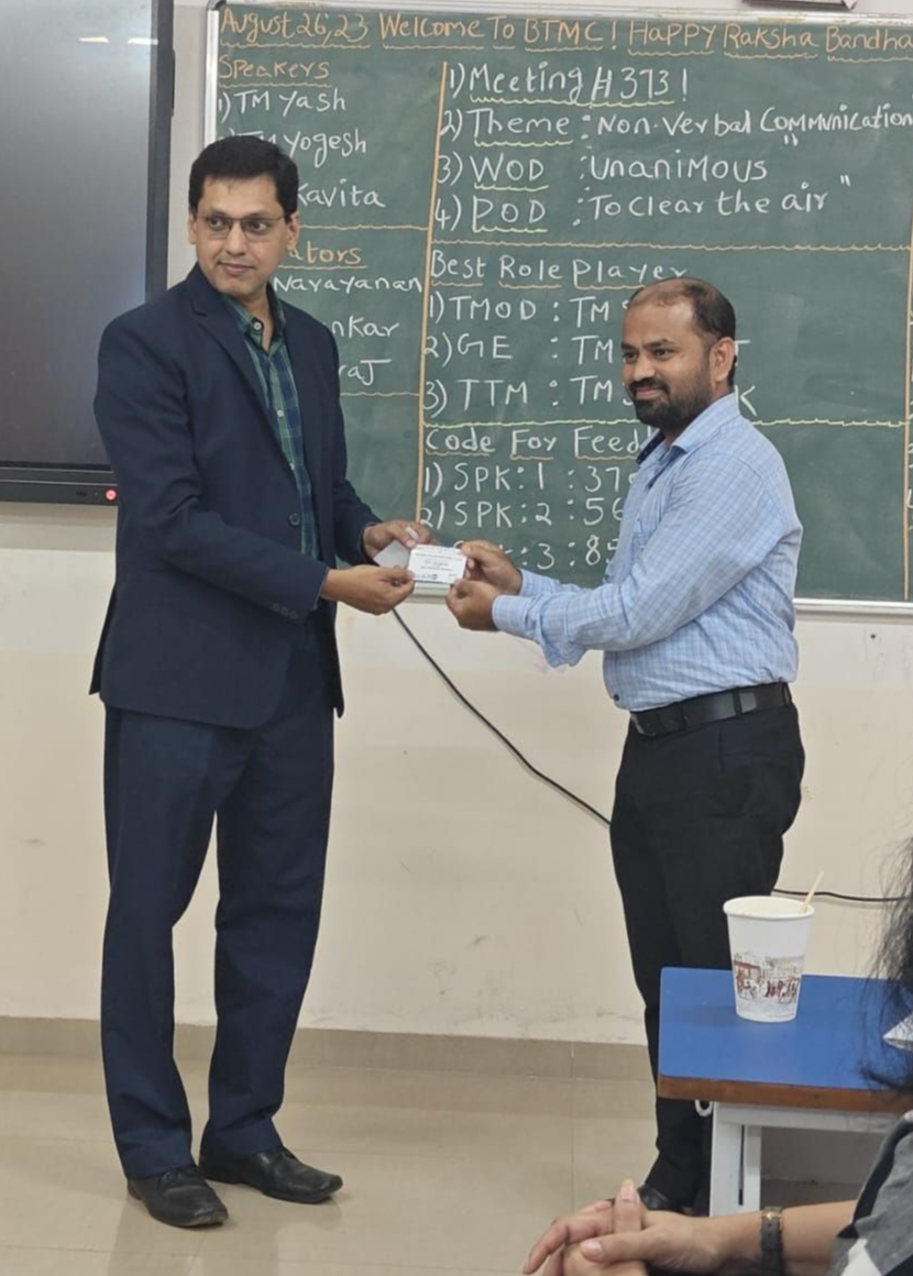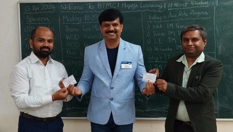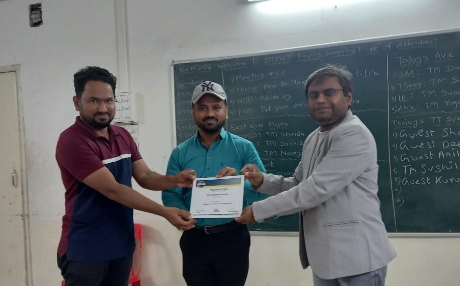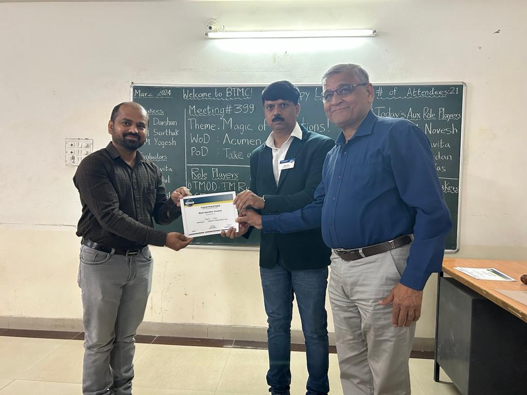 Recievd Joint Winner as "Best Speaker" on 13th Jan Toastmaster Meeting
